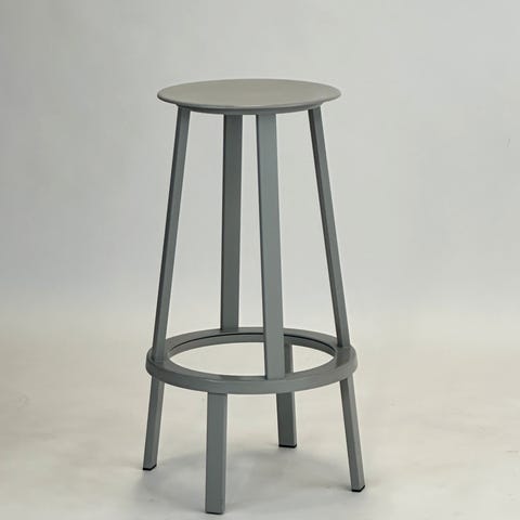 * Materialer: Fremstillet i robust og lakeret stål, denne version af Revolver barstolen er grå, hvilket giver et minimalistisk og stilrent udtryk, der let passer ind i forskellige indretningsstile.