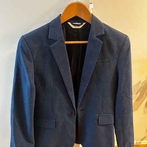 H&M børnejakke i sort farve, størrelse 134, designet til drenge. Jakken har en klassisk pasform med knaplukning foran og lommer. Materialet er ikke specificeret, men jakken er egnet til formelle og daglige anledninger.