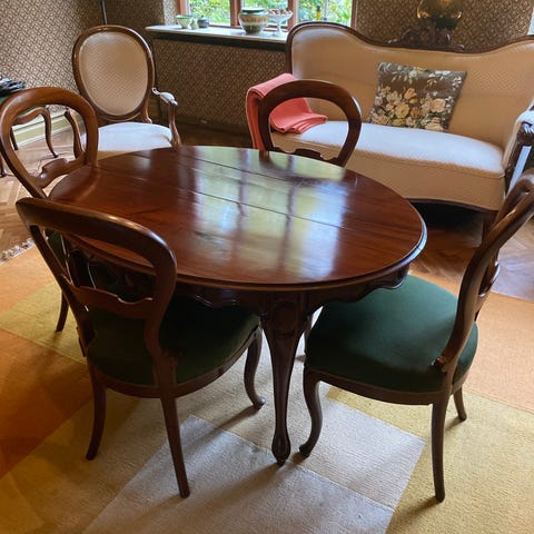 Antikt spisebord og fire stole