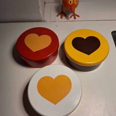 Den ene har et lille sted og en bule men eller er de fine .ik brugt bare ligget hen .samlet køb farver som billedet .
