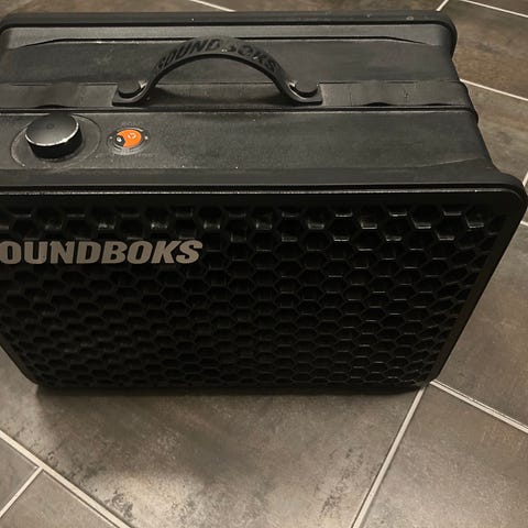 Soundboksen virker som den skal, dog er der overfladeskræmmer som ses på billeder osv. batteri og lader medfølger, dog virker lader kun engang imellem🧐.