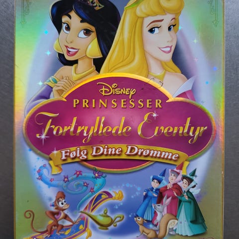 Disney Prinsesser Fortryllende Eventyr DVD med eventyrfilm om prinsesser som følger deres drømme. DVD'en indeholder flere historier med kendte Disney-prinsesser og inkluderer undertekster og ekstra aktiviteter. Egnet til børn og familieunderholdning.