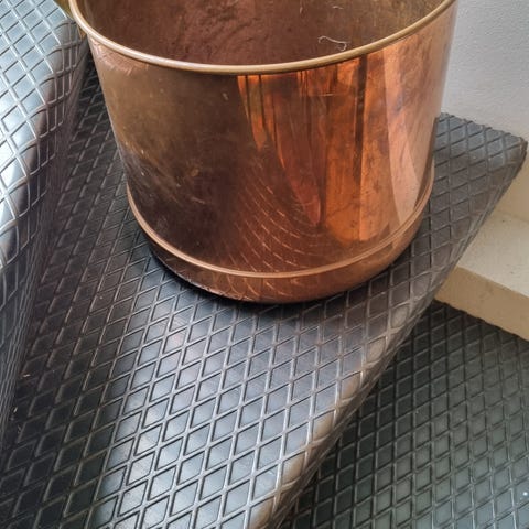 Oval kobberspand med 2 hanke pæn stand H 24 cm L 45 cm B 35