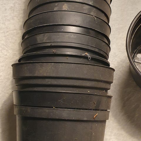 Urtepotter i plast, store urtepotter i ok stand og med huller så vand kan komme væk. Dog har begge afrevet kant, men ingen betydning, hvis de feks står i krukke el lign.