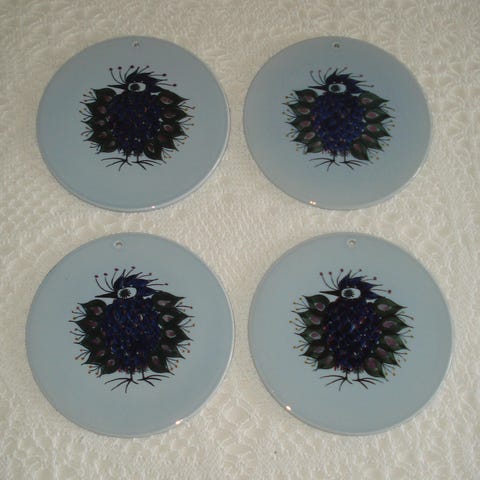 Royal Copenhagen Tanera fajance smørbrikker med påfugl.