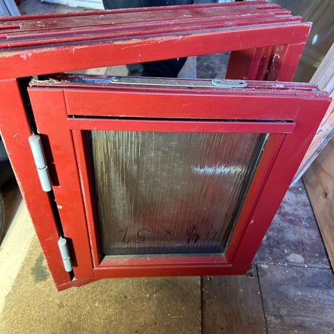 Rektangulær vindue. Kan ikke åbnes. Brugt som lysindfald, indendørs.