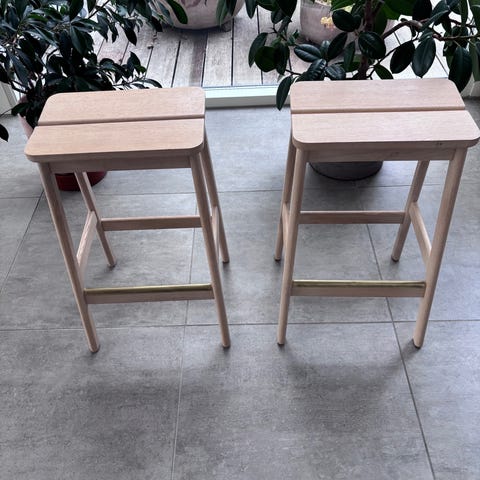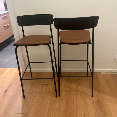 Rigtig pæne cognac farvet barstole. Begge stole kan hentes for 1500 kr i Brabrand. 1 stol koster 2000 fra ny