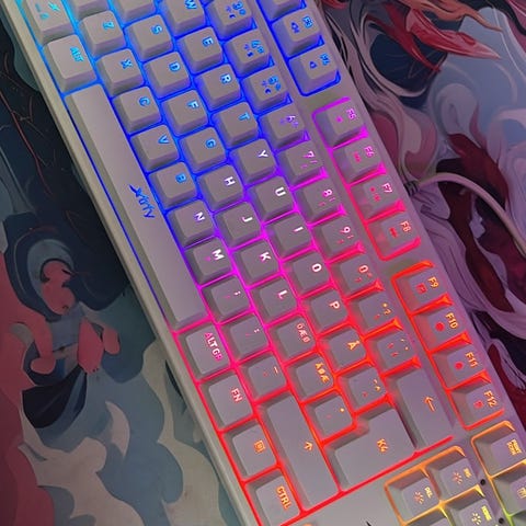 Mekanisk gamer tastatur/keyboard, sort med RGB-belysning, MX Red switches, kompakt 60% layout, designet til gaming og generel computerbrug, kablet USB-A forbindelse og har en robust konstruktion. Ikke brugt meget, og intet slid at se/mærke