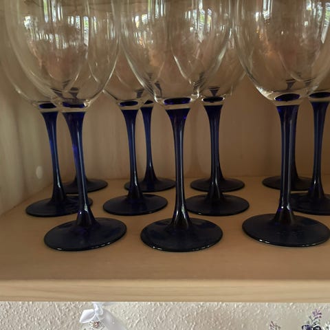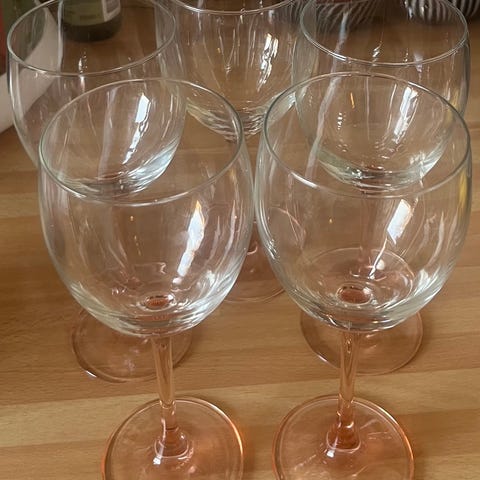 Flottere glas med lyserød fod. Flot, nærmest ubrugt stand
