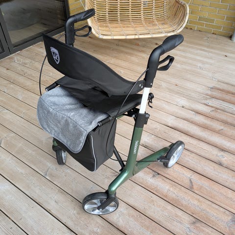 Letvægtsrollator med rygstøtte og aftagelig taske