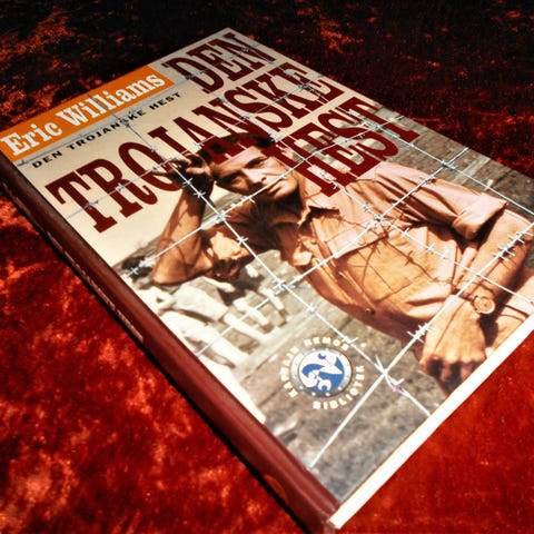 DEN TROJANSKE HEST, Eric Williams, genre: roman, Roman baseret på velkendt (og også filmatiseret) hændelse i tysk interneringslejr under 2. verdenskrig.