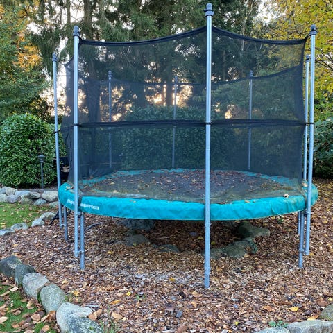 Trampolinen er taget ned, og derfor klar til afhentning.