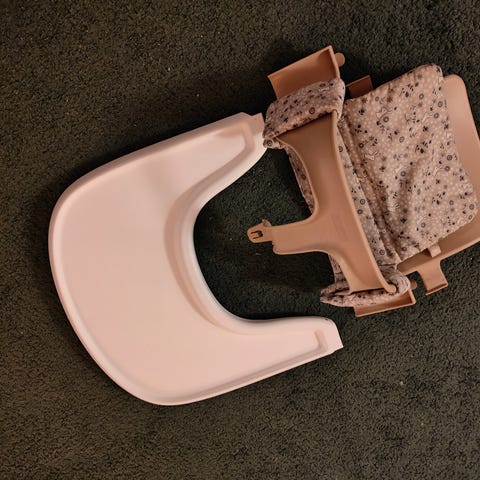Stokke Højstol sædeindlæg i gråt stof. Passer til Stokke højstole og har justerbare seler for sikkerhed. Fremstillet i blødt, vaskbart materiale til komfort og nem rengøring.
