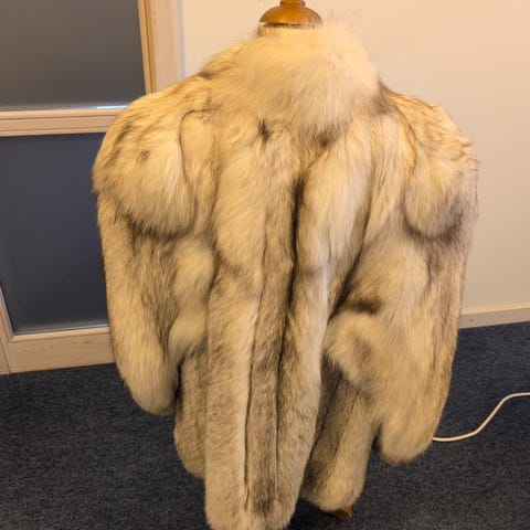 Eksklusiv dame pels, lang (112cm fra nakke). Str. Ca. 40-41. Pels type ?
