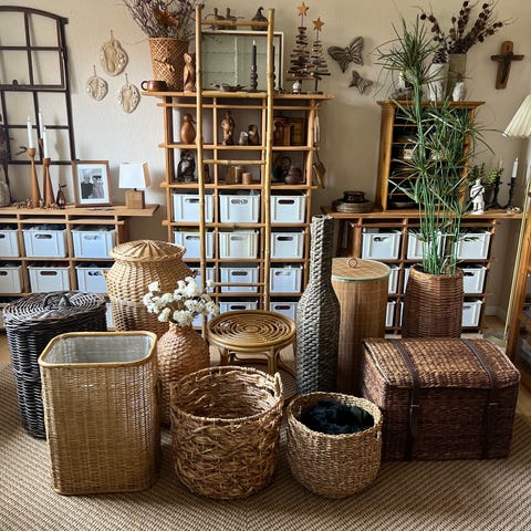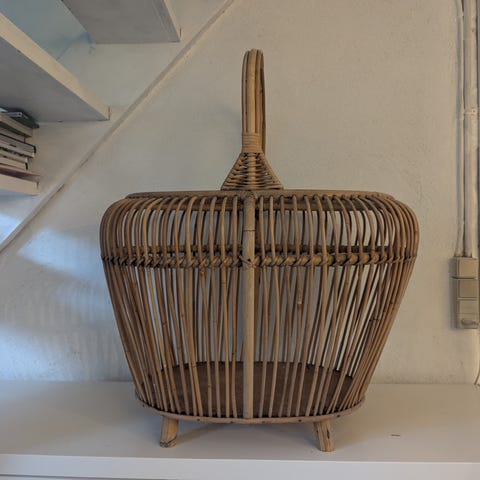 Smuk flettet kurv i bambus, 50 cm høj, 44 cm bred