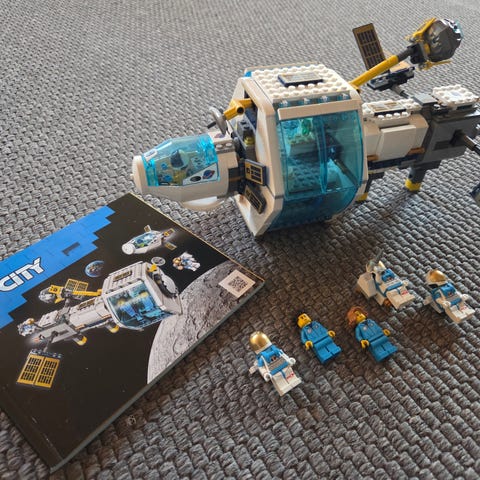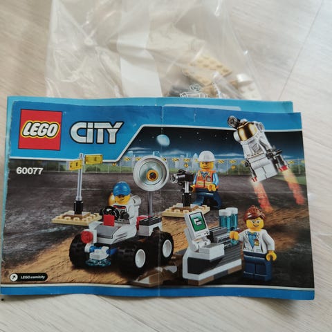 LEGO City rumfærge og to astronauter + lille sæt med rumkøretøj. Den ene astronaut mangler hjelm og astronaut til køretøj mangler. To klodser udskiftet i rumfærge, men ikke synlige. Manualer medfølger.