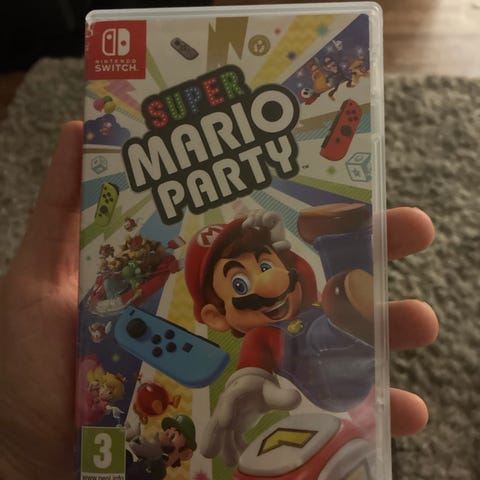 Nintendo Switch Mario Party Superstars spil. Spillet indeholder forskellige minispil og brætspilselementer med karakterer fra Mario-universet. Egnet til flere spillere og designet til Nintendo Switch konsollen.