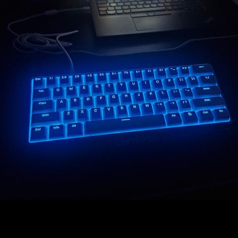 Cheery MX Speed Silver switches for hurtig typing og gaming. Double-shot PBT keycaps.