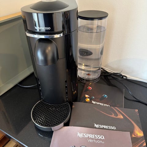 Nespresso Vertuo Plus machine - black color. Well taken care of. Has been used with lot of care and in a very good condition. Has been also just descaled and cleaned for this sell.