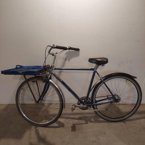 Fed bycykel med 3 indvendige gear uden fodbremse. Cyklen har helt ny kæde, bremseklodser, kabler og gearskifter samt håndtag.