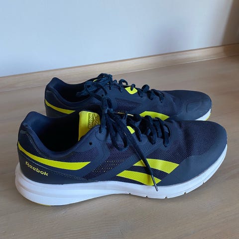 Reebok sneakers i størrelse 42. Skoene er blå og designet til hverdag og sport. Materialet fremstår som let og åndbart.