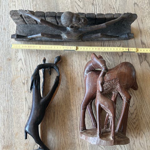 Træfigurer, skeer og kam med figurer