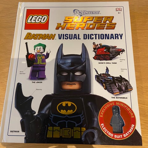 LEGO DC Universe Super Heroes Batman bog med 1000 klistermærker og figurer. Indeholder Batman, Joker, Robin, Harley Quinn og andre karakterer samt forskellige køretøjer fra Batman-universet. Bogen er på dansk og indeholder illustrationer og aktiviteter relateret til LEGO Batman-temaet.