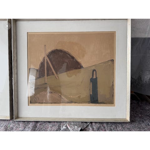 4 litografier af Johannes Hoffmeister i sort-hvid med træramme.