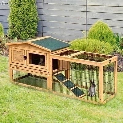 Løbegården er med oplukkelig overdel som gør det lettere at komme til kaninen.