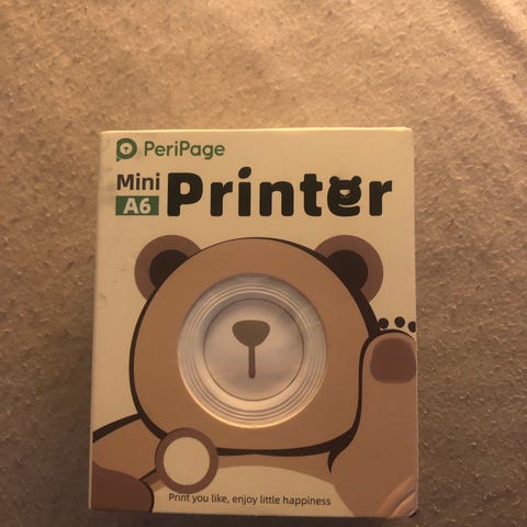 PeriPage Mini A6 Printer Mini Printer med kompakt design og bæreveske. Printeren er beregnet til A6-størrelse utskrifter og leveres med flere fargerike papirark. Produktet er egnet for utskrift av små bilder, notater eller etiketter.