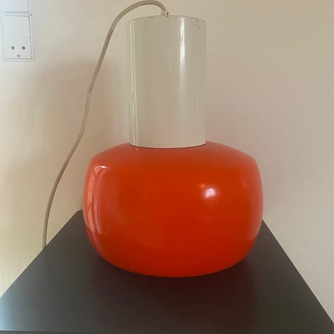 Flot orange Pompei pendellampe designet af Jo Hammerborg i 1963 for Fog & Mørup. Original fatning medfølger.
