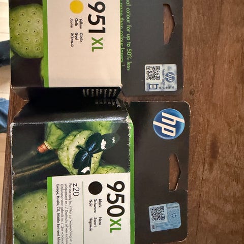 HP 950XL og 951XL blækpatroner i farverne sort, cyan, magenta og gul. Passer til kompatible HP printere. Patronerne er i XL-størrelse, hvilket betyder større blækvolumen sammenlignet med standardpatroner.