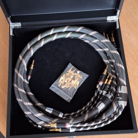 MIT CVT 2. Hybrid 2x3m biwire , spader i forstærker enden og banan stik i højttaler enden, læs evt testen på stereophile hvis du er i tvivl om kablets egenskaber