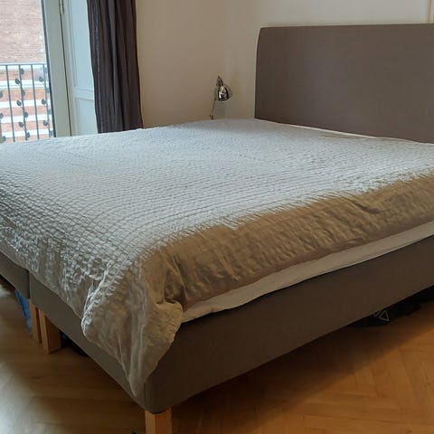 IKEA STAVANGER Seng med TUSTNA madras 2 stk sort stof