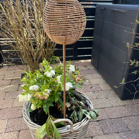4 helt nye bedlamper med blålilla blomster, som lyser flot om aftenen via solceller.