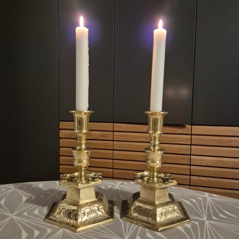 To flotte lysestager i messing,med patina,sælges samlet for blot 200kr..