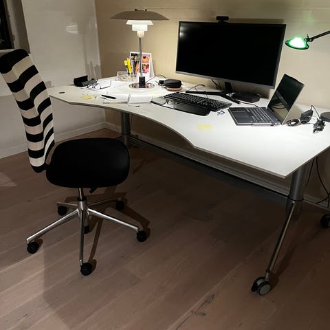 Sort antracit hævesænkebord. Nuværende nypris hos Holmris 10.437 kr. Se link for mere info: https://shop.holmrisb8.com/product-catalog/webshop/nordic-collection/skrivebord-h4/180-cm