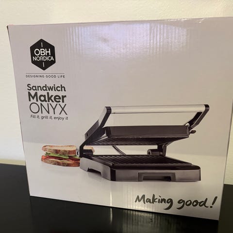 Sandwich Maker med 4 rum til tilberedning af sandwich. Elektrisk model med sort ydre. Velegnet til hjemmebrug til hurtig tilberedning af mad.
