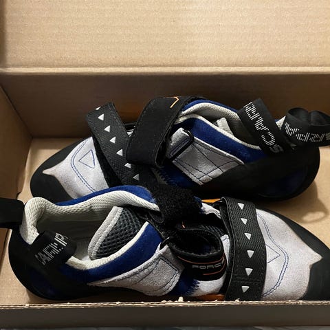 Scarpa Vapor V klatresko, holdbar god italiensk mærke i størrelse 40 med sort, grøn og pink farve. Fremstillet i slidstærke materialer med velcrolukning for justerbar pasform. Velegnet til både indendørs og udendørs klatring for både mænd og kvinder. Ny pris 1.499,- sælges til en brøkdel af prisen (699,-) da det var en fejlkøb