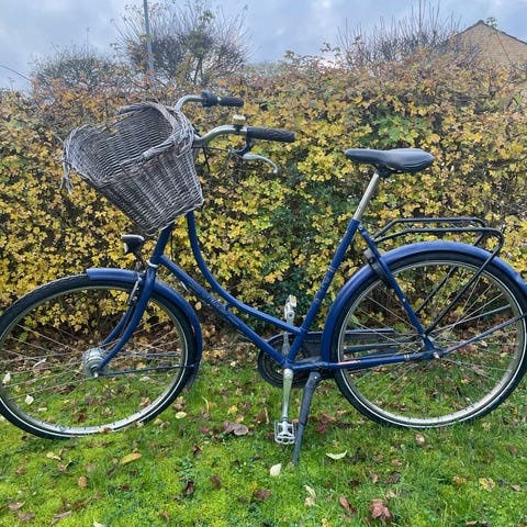 DameCykel i blå farve. Med 3 gear og dynamolygte. Stellet er 54 cm og hjulene er 26 tommer. Cyklen har klassisk ramme med lav indstigning, fodbremse og håndbremse. Udstyret med skærme, bagagebærer, kædeskærm og reflekser på hjulene. Passer til daglig brug og bykørsel.