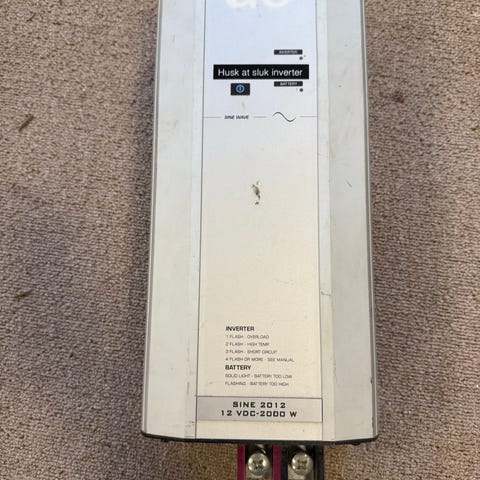 Ren sinus inverter med automatisk AC-prioritet (ATS). Omdanner 12V DC til 230V AC og skifter automatisk til ekstern 230V strøm når køretøjet/båden tilsluttes landstrøm. Leverer stabil og ren strøm – egnet til følsomt udstyr som computere, opladere og husholdningsapparater.