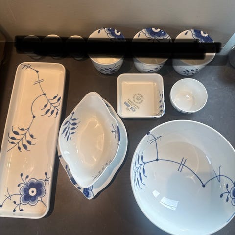 Royal Copenhagen Musselmalet Skål Sæt Porcelæn Blå og Hvid