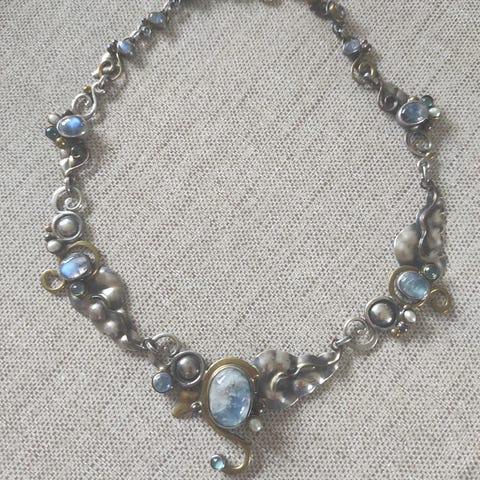 Halskæde, halvædelsten, Calvin Begay, Halskæde med tilhørende øreringe.