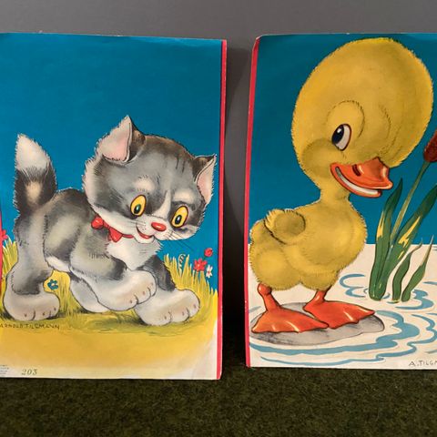 Begge billeder har lidt slidt og stød skader, da de har hængt på et børneværelse, men står ellers i pæn stand da det primært er på kanterne.