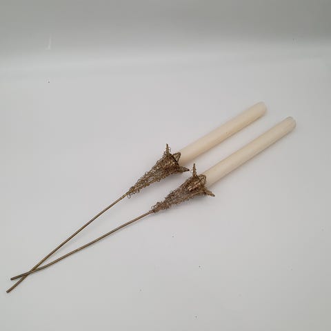 2 lysholdere med spyd, til små bloklys. Ø. 5 cm.