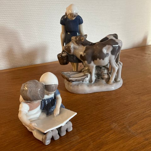 Royal Copenhagen figur af et barn, der fodre en gås.