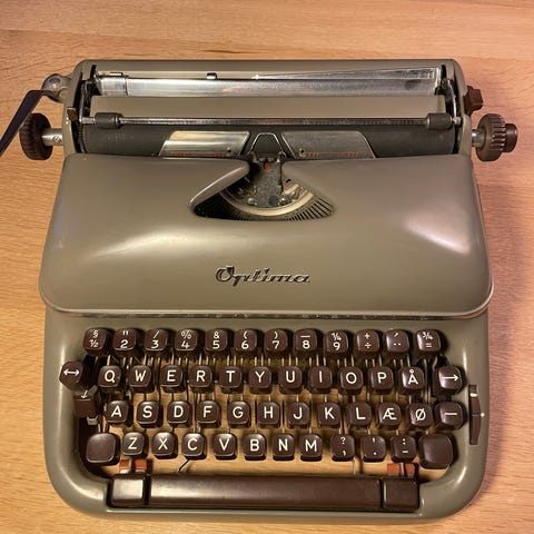Imperial Skrivemaskine i sort metal med klassisk design. Udstyret med runde taster og manuel betjening. Leveres med en sort kuffert til opbevaring og transport. Velegnet til skriveopgaver uden brug af elektricitet.