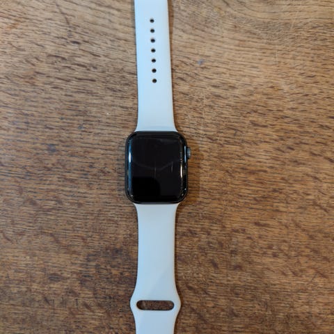Apple Watch Series 6 40mm fra 2020. Købt omkring udgivelsesdato i 2020. Uret har ikke været brugt ret meget, men skærmen er desværre flækket i den ene side (se billeder). Man kan sagtens se skærmen, men tænker man bør skifte den. Uret har farven gold (rosa) og remmen er pink sand.
