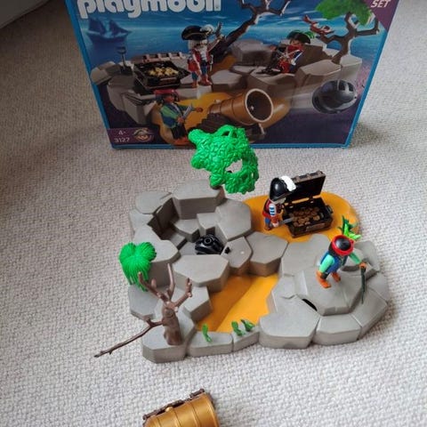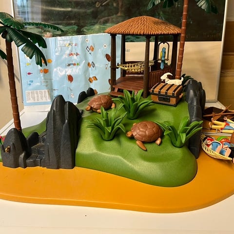 Playmobil 3158 Øde Ø, med en person, abe og palme samt shelter.