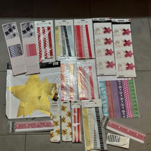 Ca. 14 pakker med strimler til jule-fletstjerner / papirstjerner.